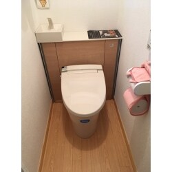 和式トイレから洋式トイレへご検討ということでした。収納スペース、洗浄力のあるトイレがご希望でしたので、LIXIL特有のアクアセラミック製のトイレ、またそのプランの中でもリフォレという商品はキャビネット付き収納スペースがありますので、こちらの商品のご提案をさせて頂きました。