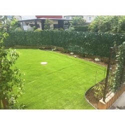 全面を人工芝をメインに、直射日光がすごいという事なので、熱線遮断性の屋根材を使用したテラス屋根を。 後は施主様自身でメッシュフェンスに人工植物とガーデンシンクを置き今まで以上に綺麗なお庭になりました。 今後は息子さんと一緒に植物を植え、華やかにしていくそうです