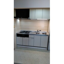 古いマンションで流し台が設置されていて、シンクが中央にあり、調理台とガス機器が離れて使いにくかった・・・ また、ガスキャビネットなのでまわりのお手入れが大変でなかなか手が届かない。