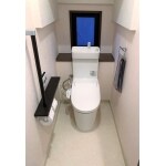 スタイリッシュなフォルムで節水タイプの温水洗浄便座をご提案させていただきました。リモコンは壁付けのタイプで、使いやすく見た目もスッキリです。 また、トイレからの立ち上がる動作をサポートする「手すり」の設置も、ご提案させていただきました。ちょっとしたことですが、あるととてもラクだとのお声をいただいています。