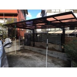 カーポートの屋根材は耐風圧が決まっていて、台風などの一定の強風レベルを超えると骨組みなどが変形しないように屋根材が飛ぶように設計されています。 今回は車を日焼けや霜から守ってくれる、スモークブラウンをご提案させて頂きました。