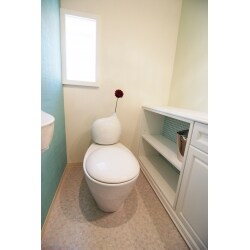 弊社でお取り扱いしている花も生けられるトイレを設置したトイレ空間です。ショールーム2階でご覧いただけます。
