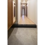 玄関ドア内側を木目のシートでアレンジ フロアータイルもお洒落