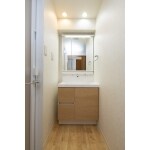 サイズダウンでできたスペースで収納設置(洗面室)