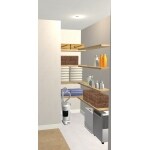 浴室を1坪にサイズアップし、以前の洗面台のスペースはオープン棚で納戸になりました。ストック品や季節家電、ポリタンクなど置いていただけるスペースにしました。