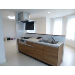 キッチン横の壁を壊すことで開放的な空間にする事、同時に明るい色の内装材を使用することで、より明るく、広い空間にするご提案を致しました。