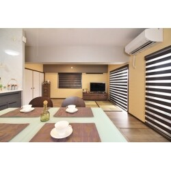 息子さんが自立され今後夫婦二人で暮らすにあたって、南面の和室とLDを一部屋にして広々と快適に暮らしたい。段差もなくしたい。狭かったキッチンを対面にしてダイニングと一体感を出したい。イエローを取り入れつつ、和室の襖を空間に溶け込ませ全体的にモダンなかっこいい雰囲気にしたい。