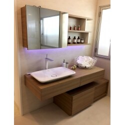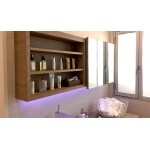 開け閉めもスムーズです。化粧品や小物がたっぷり収納できます。下に間接照明を設けました。