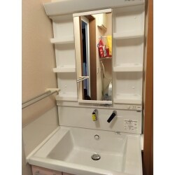 - 洗面化粧台交換:TOTO(KZシリーズ)・1面鏡(LED)・片引出しタイプ