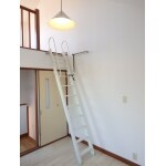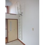 ロフト用ハシゴに変更、ハシゴが不要の時は、壁に立てかけるフックが付いています。