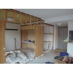 限られたスペースを有効に使うために収納するものを想定し、使いやすい造作家具を製作しました。