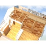 現場調査時に屋根裏にかなりスペースがあることを確認していたので、梁型が出てくる箇所も含め、まず図面を元にロフトのパースイメージを作成し、柱がみえてくる位置など詳細にご説明。
