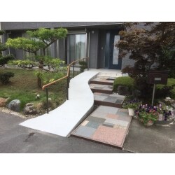 元のアプローチを健常者も兼用して使えるようなものを提案できたらと思い、S字のスロープにしましたが安全性や距離の問題をケアマネージャーさんとお客様とで相談しながら施工しました。