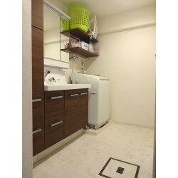 洗面台と洗濯機の間の間仕切り壁が、下洗いした洗濯物を洗濯機に移す時に邪魔になる事も。