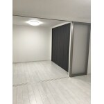フローリングは、LIXILハーモニアスリフォーム6。 クローゼットドア(特注),可動間仕切(片引3枚戸アルミタイプ特注)LIXILラシッサS。 窓は、防音、断熱の効果があるLIXILインプラス。をご提案させていただきました。広々とした空間のお部屋に仕上がりました。 収納棚、天井・壁のクロス貼り替え、天井照明移設、スポット照明撤去しました。
