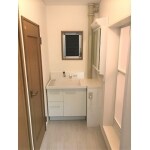上台はそのまま残し、下台のみ交換させていただきました。 シンプルで、清掃性があるLIXIL ピアラをご提案させていただきました。洗面台の交換と一緒に、床のCFとクロスも交換。クロスと、洗面台を清潔感のある明るい色にすることで広々とした脱衣所に仕上がりました。
