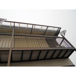 台風で飛んでしまったバルコニー屋根の波板を設置して、止めを増やして補修を行いました。