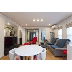 間取りの変更(4LDKから3LDKS) 玄関位置変更及び交換工事 LDK坪庭部分サッシ追加(3本) フロア張替え(LDK一部、ゲストルーム) 1階内装建具交換、追加 1階クロス張替え キッチン交換 照明レイアウト変更、交換 外壁左官工事(玄関、サッシ取付面) ウッドデッキ、目隠しフェンス設置