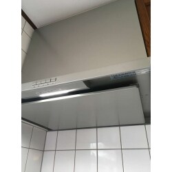 フラット形状で油の拭き取りも簡単で、薄型のスタイリッシュなタイプのレンジフードを提案させていただきました。