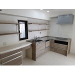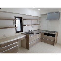 壁付けI型のキッチンからL型のキッチンへご提案させて頂きました。広い空間をうまく利用し、無駄に動かないように考えさせて頂きました。
