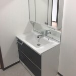 間取りの関係でいびつな洗面室をすっきりとさせました。