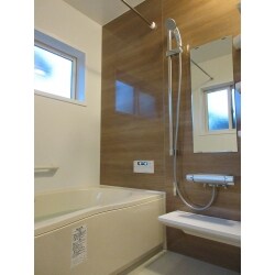 ユニットバスへ変更することで、床がひんやりとしにくく、お掃除もしやすくなります。 アクセントパネルは木目調パネルにし、優しいイメージの浴室となりました。