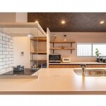 キッチンの雰囲気は、H様が好まれるナチュラルだけど都会的なテイストにまとめました。天井の革のようなクロス、ポイントとして使った清潔感のあるホワイトのサブウェイタイルなど、大人の上質なキッチンを演出しました。 ナチュラルな木目調でイメージを統一できるよう、家具のようなデザイン性と実用性を併せ持つリクシルのアレスタを設置しました。家事がしやすく、収納力もアップ。