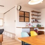 キッチンとリビング・ダイニングの距離が縮まったことで、お料理中でも家族の会話がしやすくなりました。イスのカラーは、センスの良いおばあ様がセレクト。タンポポイエローが、差し色として効いていて、室内で明るく咲いているようです。