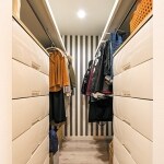 ゆったりとした奥行きがある通路は、服の出し入れが容易です。収納の定位置を決めておくと、お子様の成長した後でも、自分で洋服の管理をしやすくなるでしょう。 高さがあるので、お手持ちの箪笥も余裕で入りました。棚板の上には、普段あまり使わないものなどを置けます。