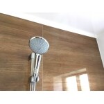 | その他採用機器・設備 | キレイサーモフロア(ベージュ) アクセントパネル(チェリー) ベース(ホワイト) エコベンチ浴槽 浴室内握りバー クランクレス水栓 レインシャワー スライドフック付き握りバー まる洗いカウンター |