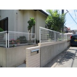 隣家フェンスと同系色で錆の出にくい素材を選定しました。