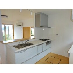 キッチンからも景色が見えるよう、対面キッチンにしました