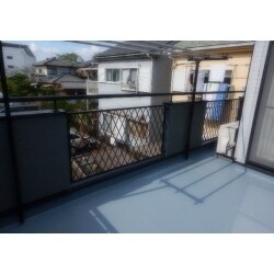 経年劣化で汚れやクラックが目立っていました。漏水調査を行い漏水箇所の特定をしました。耐水・耐蝕・耐候性に優れたFRP防水をベランダ全面にご提案させて頂きました。