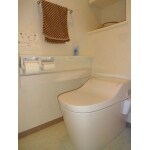 タンクレストイレのため、専用の手洗器を設置しました。床クッションフロア、壁、天井クロスを張り替え、巾木も取り替えました。