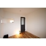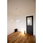 フローリングには無垢材を採用し、チャコールブラックのドアと併せることで、落ち着いた空間を演出。 コーナー部分に施したFIX窓で、採光効果と、部屋の広がり感を出しました。