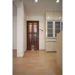 既存の間仕切りを取り払い、広々としたリビングに仕上げました。キッチン側面のパネルもフローリングに合わせて木目を採用したため、広々とした空間を邪魔しません。