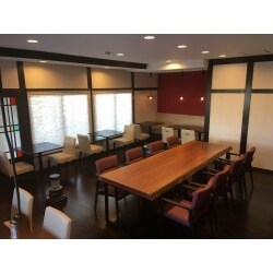 ・和風旅館のイメージに調和するように和風の部分は残しながら、建具や照明などにアンティークな雰囲気を取り入れることで、落ち着きのある心地よい空間に仕上がりました。 団体のお客様にの対応できるように、フレキシブルに対応できるベンチソファー席や、無垢のビックテーブル席を設けました。