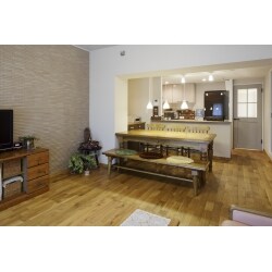 LDKの間取りには大きな不満はないけれども、対面式ながら壁に囲まれたキッチンは視界が狭いので、少しでも開放的にしたい。 既存の既製品のフローリングの質感や色合いなどを変えて、手づくり感のある空間にしたい。 できることなら床を無垢フローリングにしたい。 床の防音対策を行いたい。