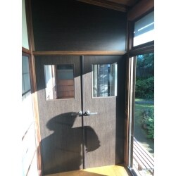 観音開きのドアを設置に加え 以前雨漏りがあった廊下軒下の板張りとアク抜き