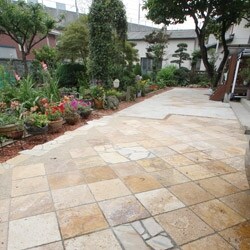 コンクリートの打ちっぱなしだと冷たさを感じるので、レンガや自然石を入れて暖かみが出るようにしました。お子さまが外遊びが好きになってくれてよかったです。