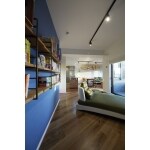 ホワイト×グレー×ブルーでまとめたホテルライクなLDK