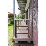 ぬれ縁を無くして、個室側からリビングまで延びた人工木のウッドデッキを設計しました。掃き出し窓からほぼ段差なしで移動できて、スムーズに洗濯物を干せるようになりました。