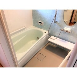 清潔感のある素敵なバスルームに!汚れがつきにくい床や壁でいつまでもきれいなバスルームを保つことができます。 また、今後足腰が弱くなった時のことも考えて浴槽付近に「手すり」もつけました。入口の扉も、従来のガラス扉から新しくなり、安全性も高くなりました。