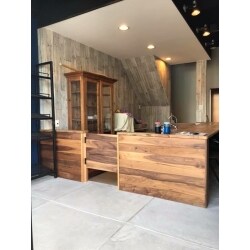 アンティークやレトロが好きだというご主人様が用意していたアンティークの椅子。アンティークに合う古材を提案させて頂き椅子の高さに合わせたカウンターを作成。