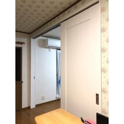 将来大きなお部屋として使用することを仮定し、三枚連動片引戸をご提案しました。建具の両端には鍵を取付け、プライベートを保つことができます。