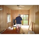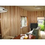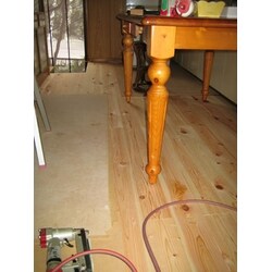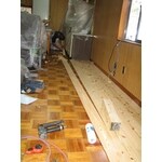 リビングキッチンの床張りと壁の張替えです。 既存の床には、普通のフローリング(合板)を張ってあり、その床の上から桧の無垢の床板を張りました。