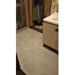 洗面室のため、既存フローリングからクションフロアに変更いたしました。所どころ床が落ちていましたので、根太からやり直しました。