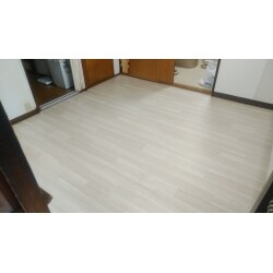 床の下地補強をしクッションフロアを張替えました。古さを感じさせる床からベージュ系の木目をご選定になり、清潔感のある木目で適度なナチュラル感とすっきりとした空間に仕上がりました。