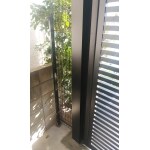 既存の位置にそのまま施工を希望されておりましたので、もともと空いていた端部分は三協 スチールメッシュフェンスHR型を設置しました。車庫のスライディングゲートは存在感がありますが落ち着いたデザインで素敵に仕上がりました。