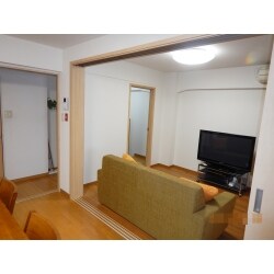 廊下とリビングの段差でよく躓いてしまうとのことでしたので段差を解消しました。 天井や壁クロスを張り替え、ドアやクローゼットなどの建具も新しいものにしています。エアコン取付、テレビ配線などの電気工事も行いました。 ※養生費も含まれております。